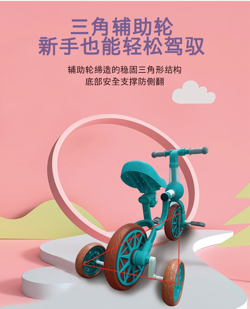輔輪可拆卸即變10寸自行車,腳踏可拆卸即變滑步車,一車多用,多種玩法滿足寶寶的各種需求