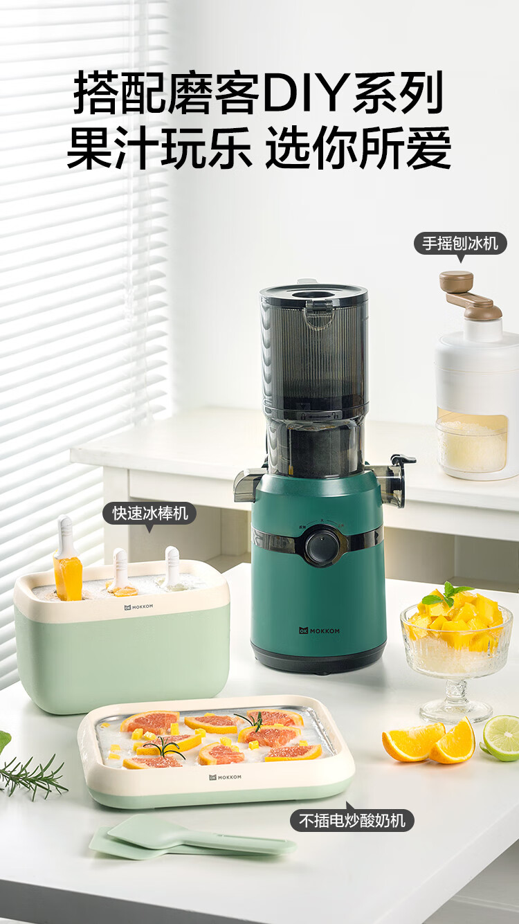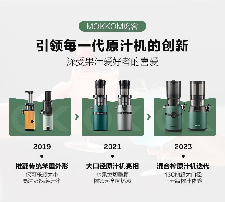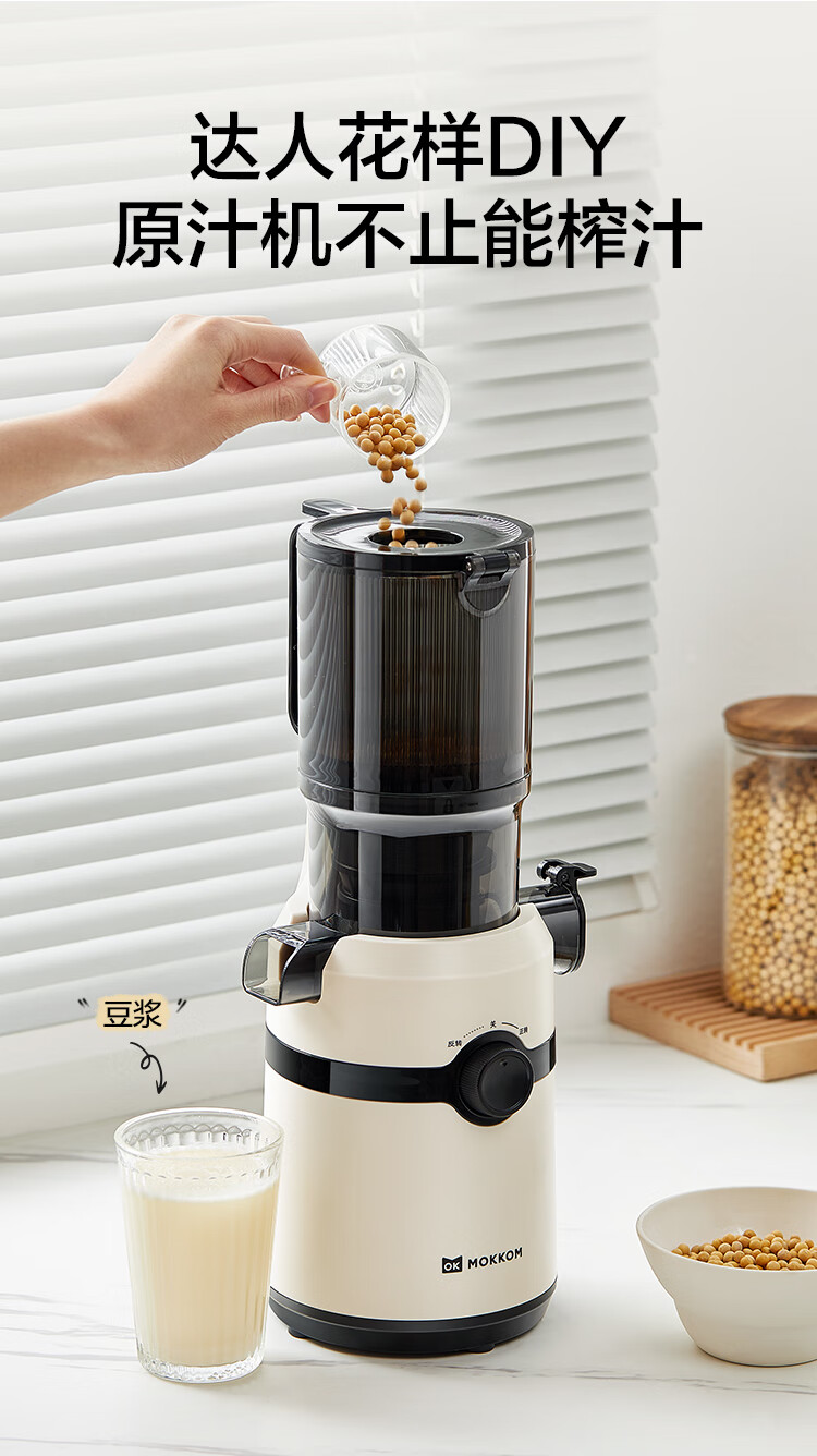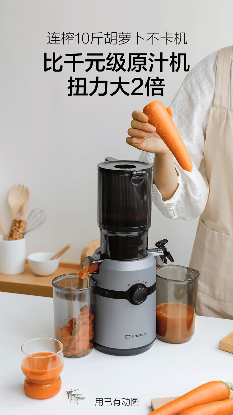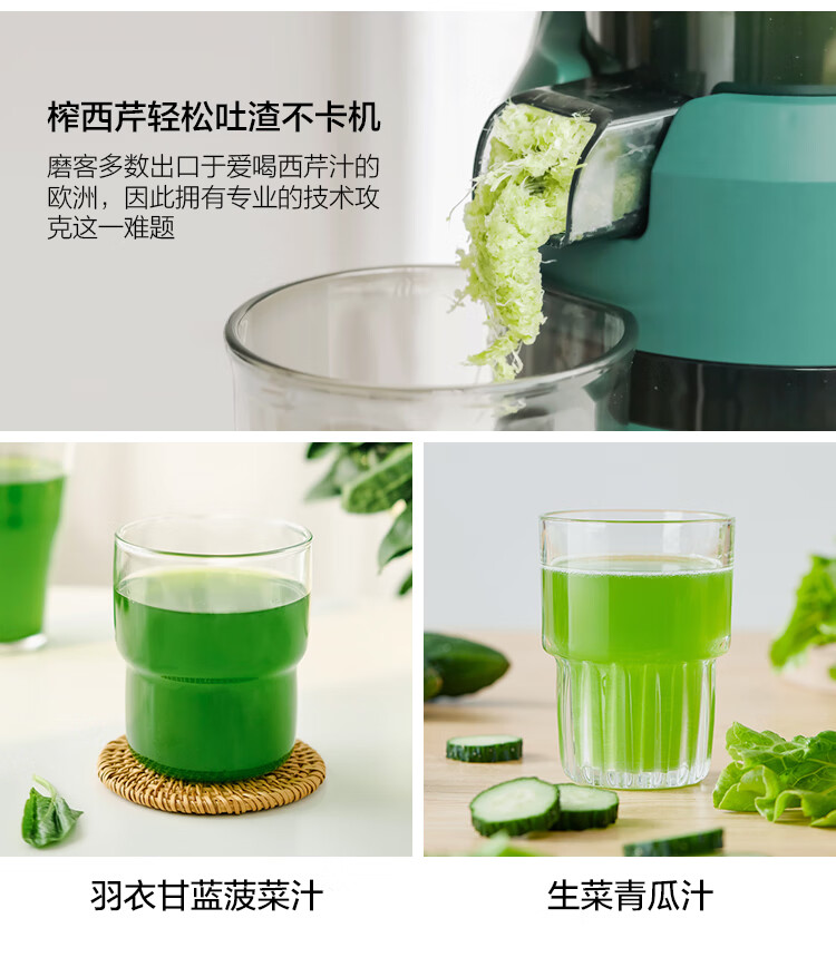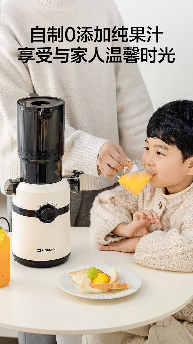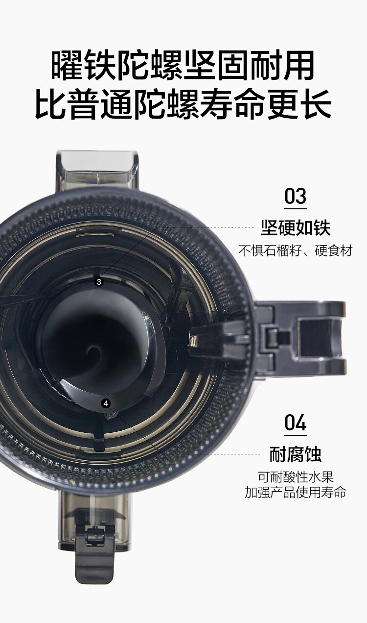 10.8cm大口徑,1L大容量料桶,可以一次榨更多水果,不用切,整顆榨,大塊投放真方便,不切小塊防氧化又安全