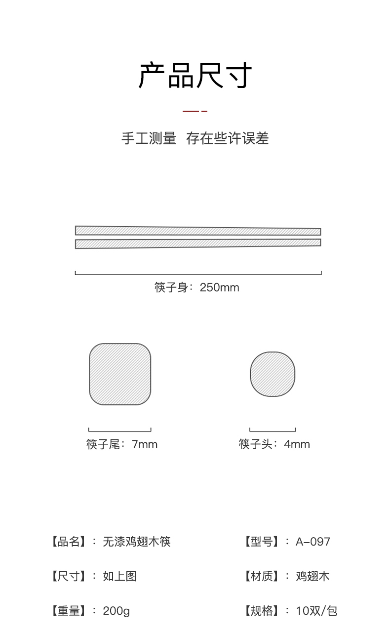 優(yōu)質(zhì)無漆無蠟無油雞翅木筷,風格復古素雅觸感溫潤,.圓角方頭光滑平整,輕巧堅固耐用,匠心七道工藝手工打磨,筷型更佳,筷身表面更光滑,天然材質(zhì)硬度高隔熱好,安全健康