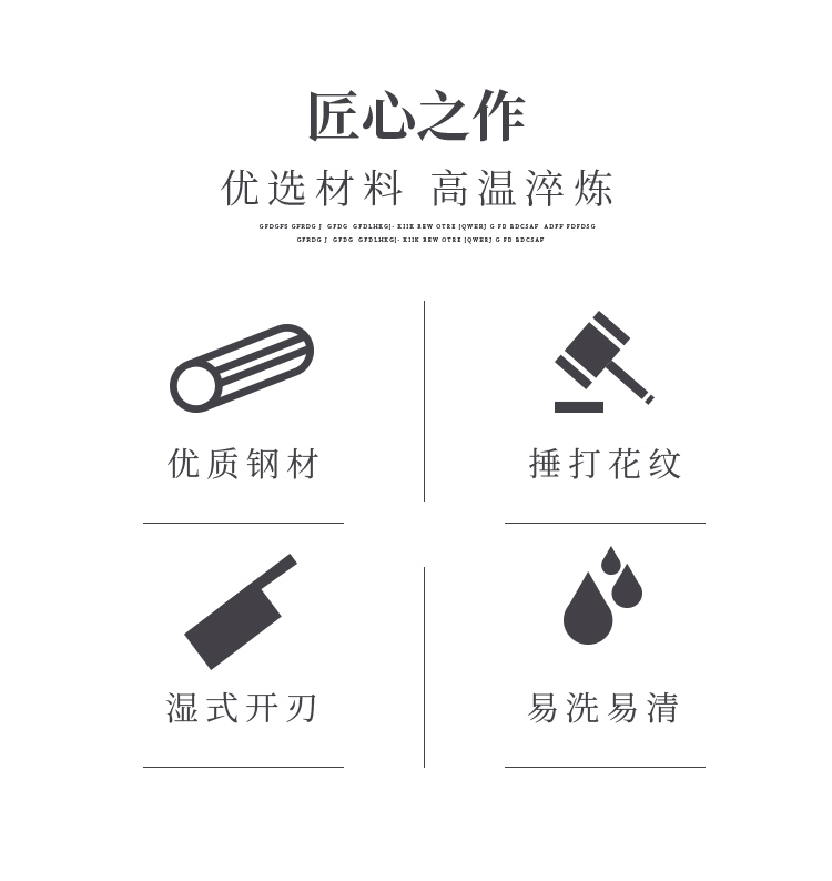 持久鋒利、耐用易磨,高硬度,鍛打漸薄刃口,鉚釘加固手柄更加牢固,用途:切片、切菜、切肉、砍骨頭等