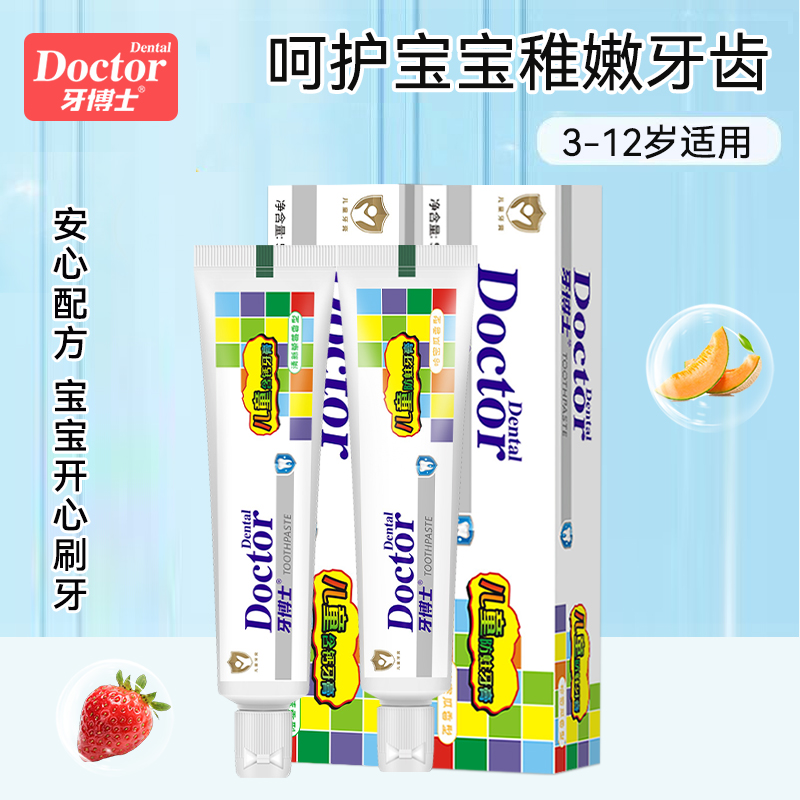 牙博士兒童牙膏3-12歲防蛀固齒白清新口氣 防蛀50g*1+AA鈣50g*1