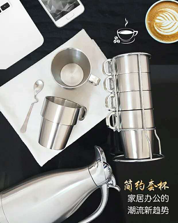 雙層不銹鋼水杯套裝兒童防摔杯子300ml馬克杯咖啡杯茶壺水具套裝