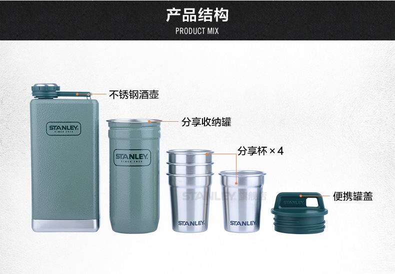 套裝包含:小酒壺收納罐合1個(gè) 分享杯4個(gè)