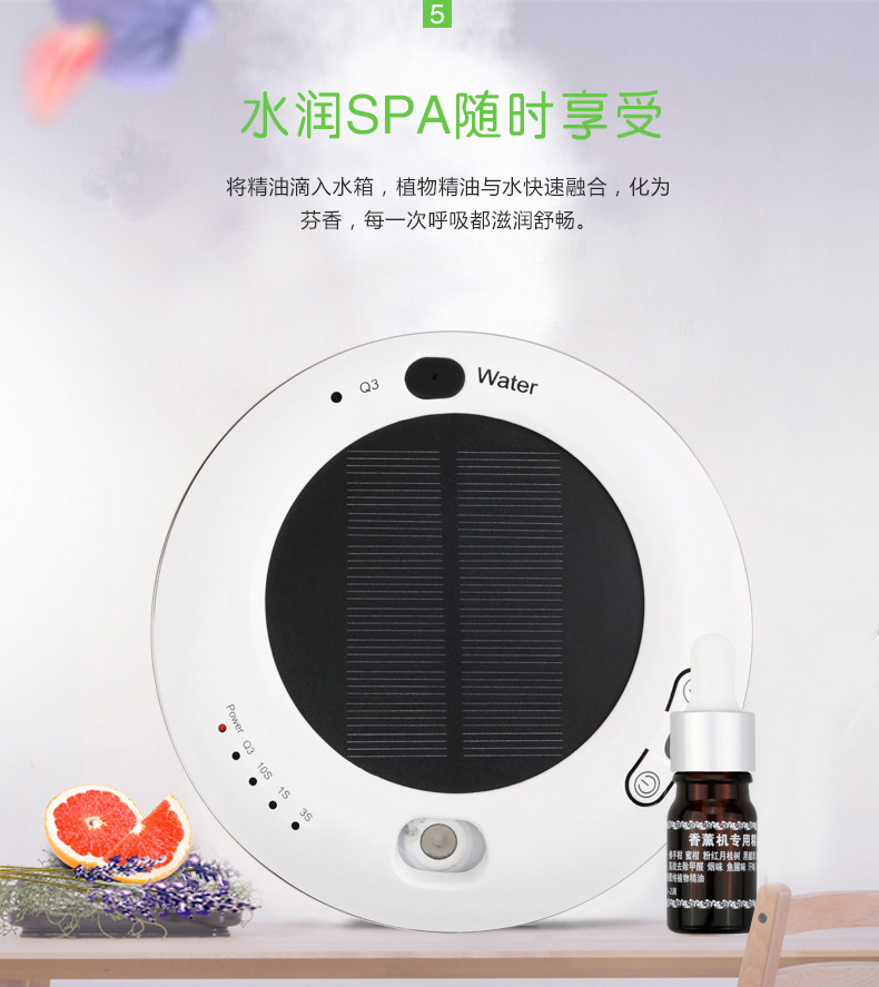 3:清新空氣:天然植物萃取植物香薰精油,氣味溫和、芳香怡人,有芳香療法之效果,有效的凈化車內、家居、辦公、休閑娛樂等場所空氣,使空氣清新宜人。