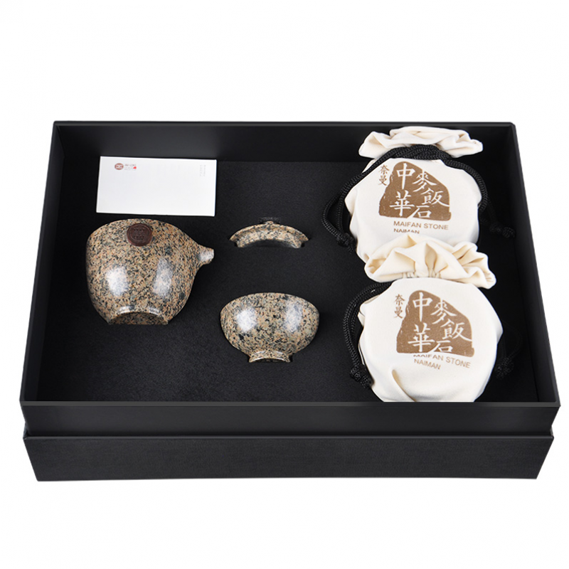 優(yōu)高雅 中華麥飯石茶水杯 麥飯石原石養(yǎng)生杯 保健杯思享快客杯+茶葉罐禮盒套裝 茶具送禮 大禮盒