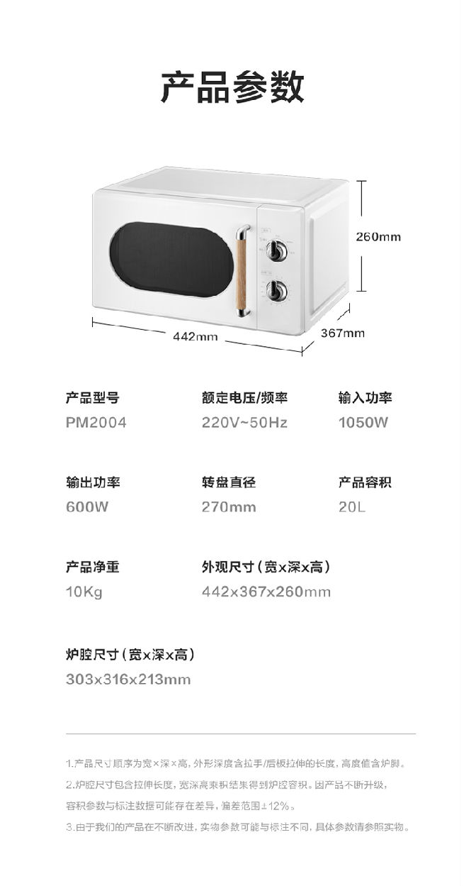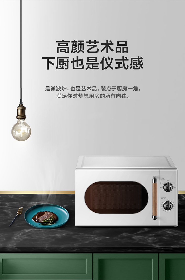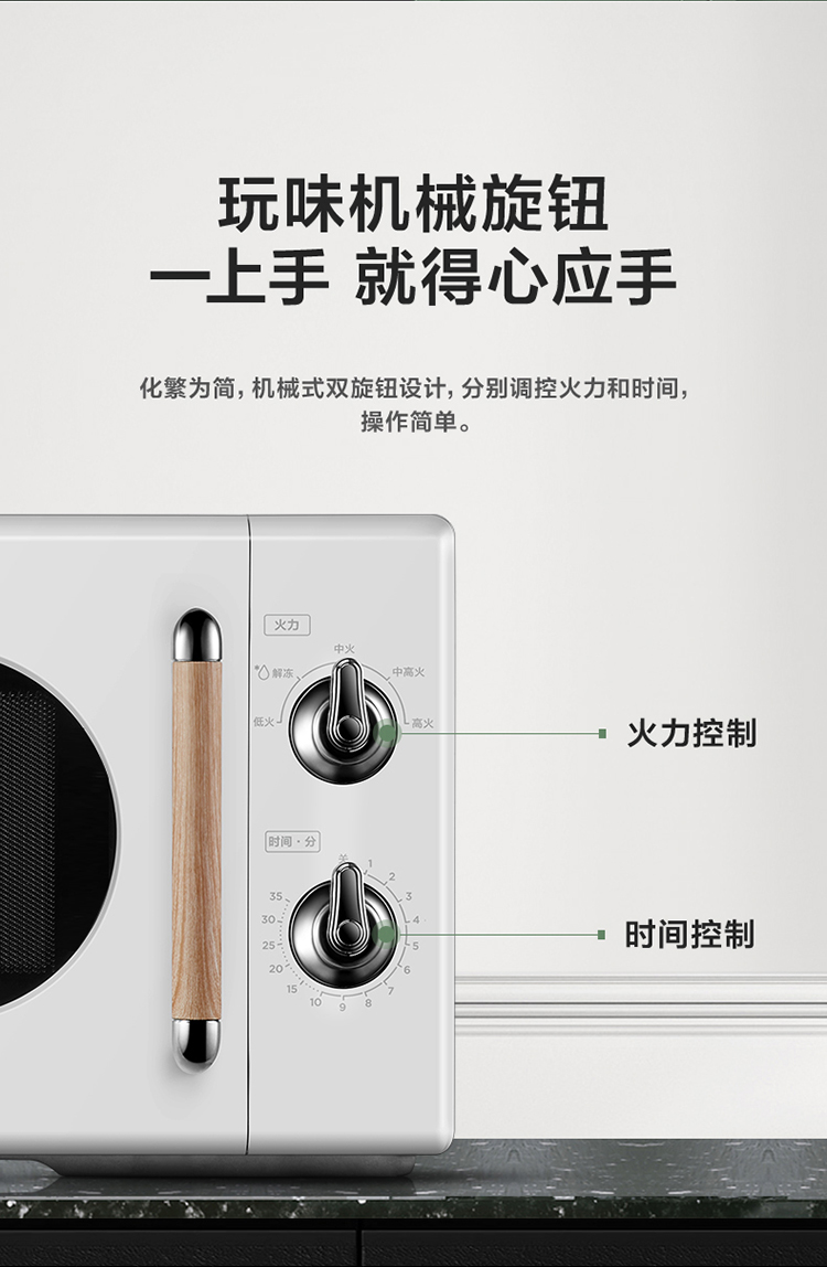 美的(Midea)復古旋鈕雙控微波爐 360°轉盤式加熱20升 旋鈕雙控PM2004 白色