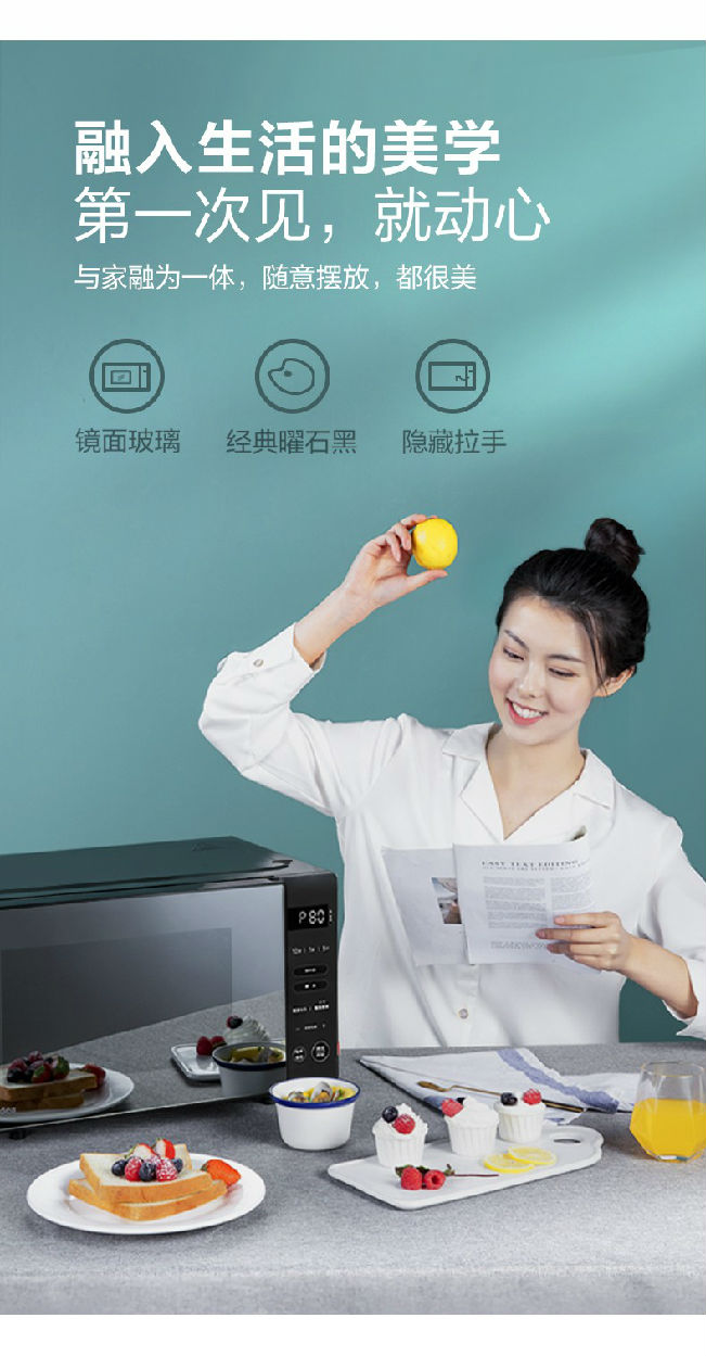 美的(Midea)多功能家用微波爐20升 大平板均勻加熱 智能解凍 智能菜單 PM20B1