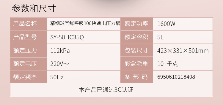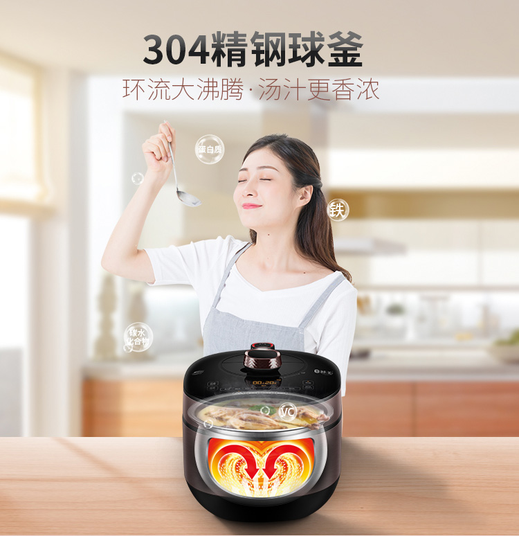 蘇泊爾(SUPOR)電壓力鍋大容量IH智能鮮呼吸IH電磁加熱電高壓鍋5L球釜雙內膽112kpa SY-50HC35Q