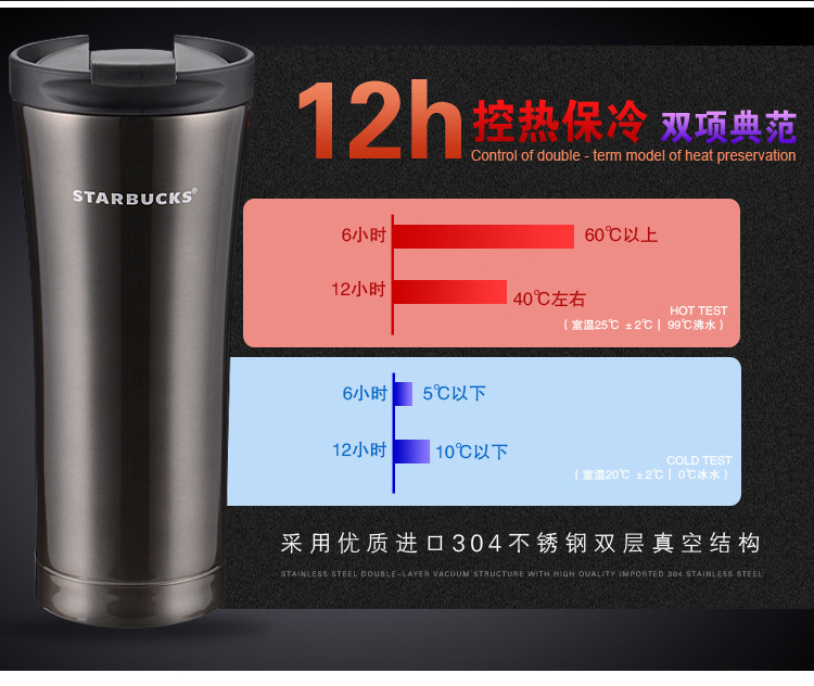 2、超長(zhǎng)保溫:304不銹鋼內(nèi)外膽,12小時(shí)以上高質(zhì)量保溫