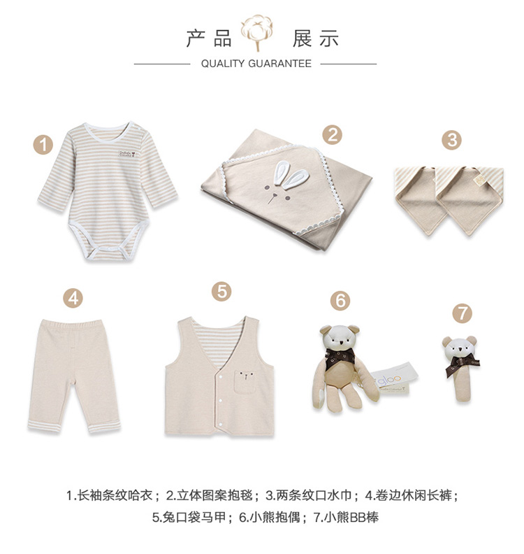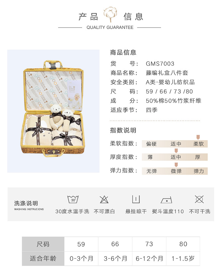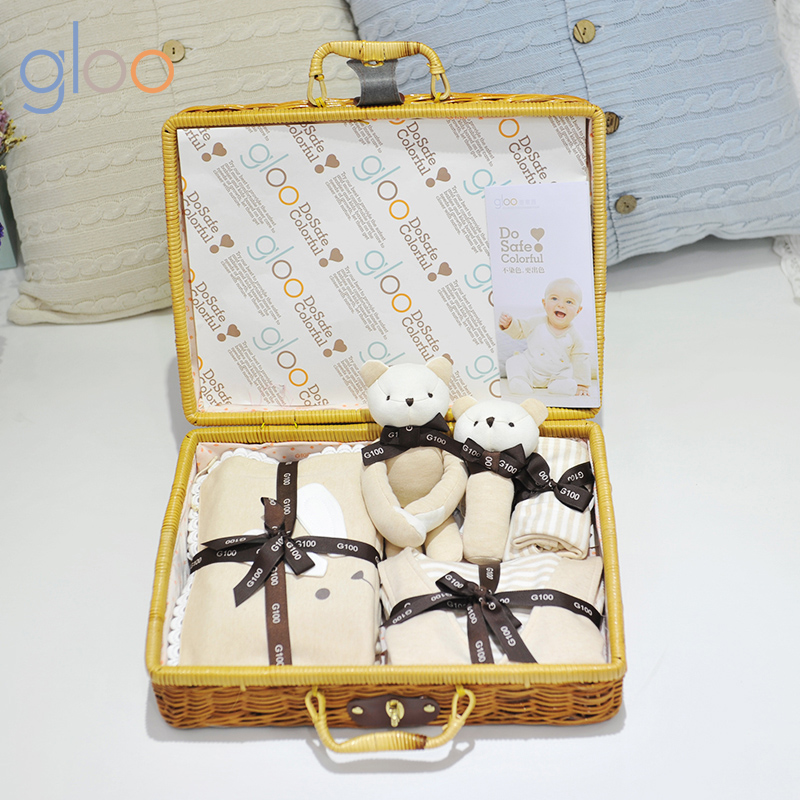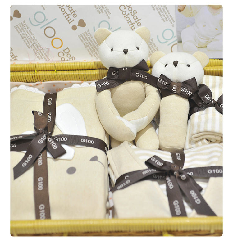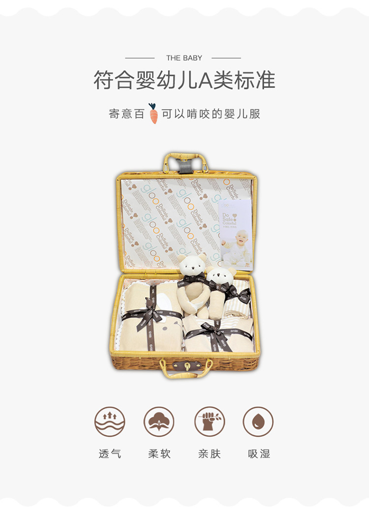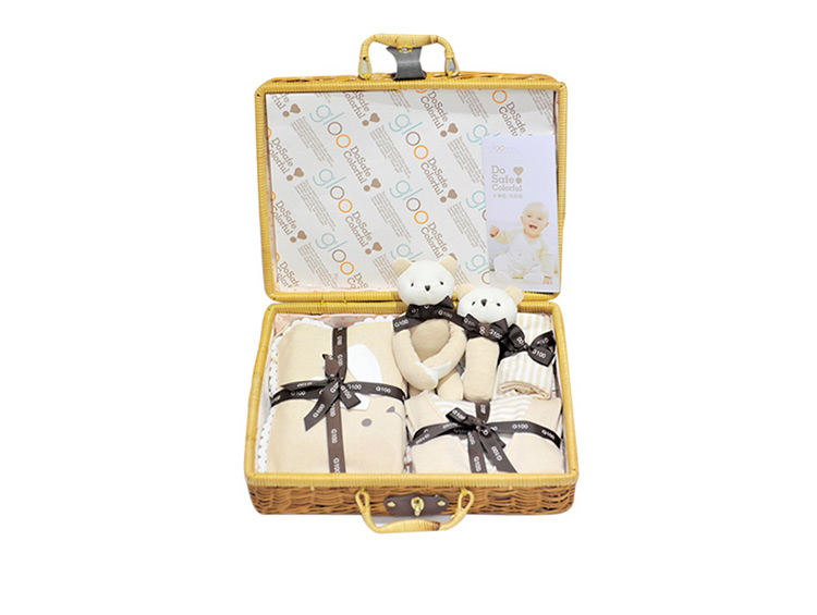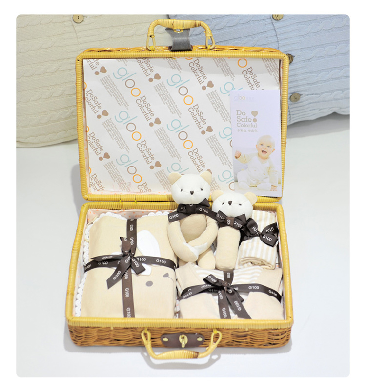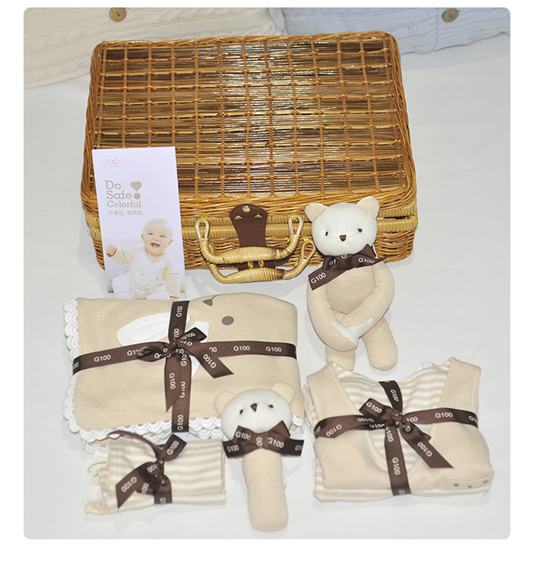 G100寄意百嬰兒禮盒有機彩棉新生兒禮盒春夏嬰幼兒藤編禮盒8件套 天然彩棉棕色